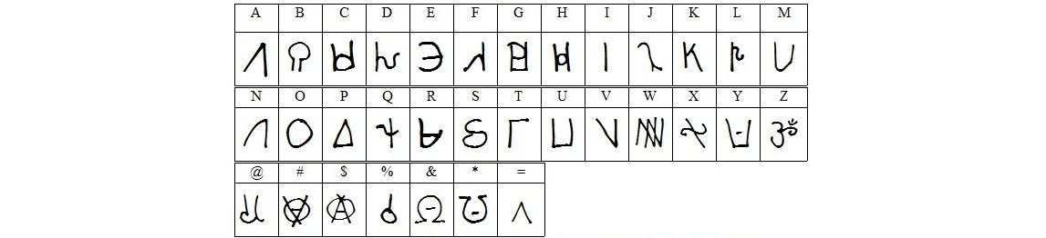 Although Simlish has no official grammar and structure, it has its own alphabet. It's based on symbols that can be seen in the game, for example, on TV screens, billboards, in interfaces.