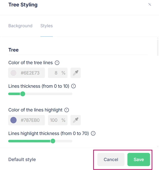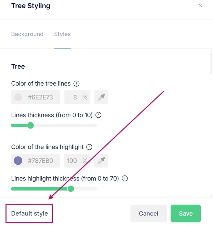 If you're not satisfied with the result and want to style your tree from scratch, click on the "Default Style" button in the bottom left corner.