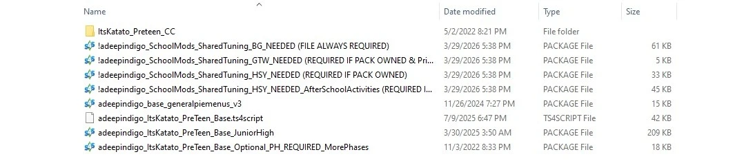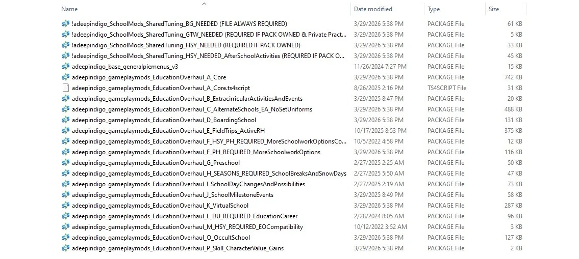 Тут стоит обратить внимание, что мод конфликтует с Shared Tuning, который необходим для Education Overhaul, Delinquent Teens, Dynamic Teen Life и Preteens. Также в конфликтах указан мод Zerbu's Go to School.
