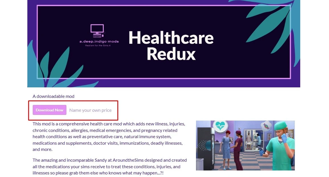 Мод конфликтует с Private Practice и Slice of Life. Если установлены оба мода, Healthcare Redux будет работать, а модули Private Practice будут отключены. Автор не рекомендует смешивать модули разных систем.