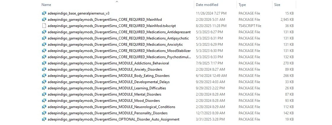 Divergent Sims – самый масштабный мод adeepindigo. Он добавляет в игру реалистичную систему нейроотличий, ментального здоровья, самооценки и зависимостей. Это не просто набор черт характера, а глубокая система, влияющая на поведение, навыки, социальные взаимодействия и даже лечение.