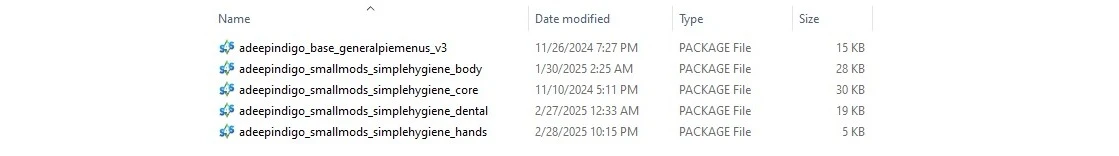 Также для корректной работы требуется мод Core Library. Мод состоит из модулей и, если у вас установлен Dental Care, то модуль simplehygiene_dental будет конфликтовать с ним, лучше его удалить.