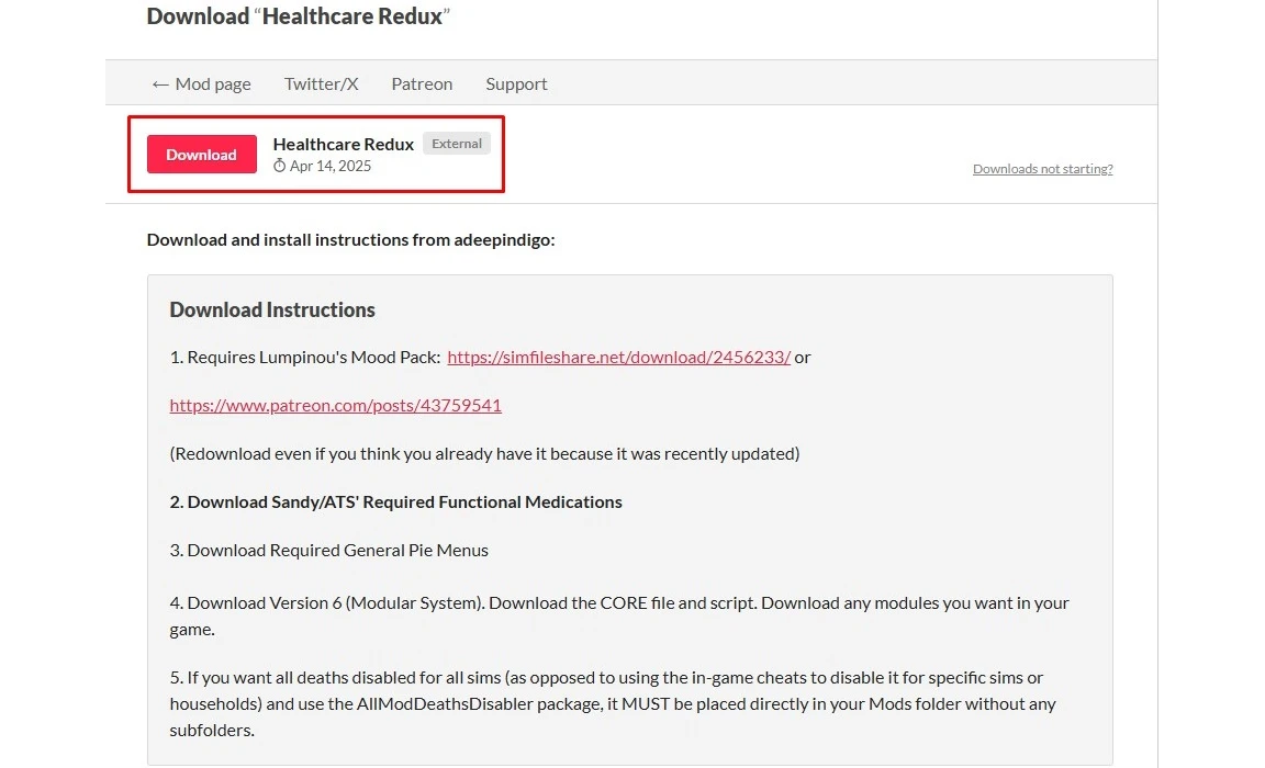 Мод скачивается с сайта автора и имеет несколько модулей. Как и в случае Healthcare Redux, важно оставлять основные модули мода, а остальное можете устанавливать по желанию.